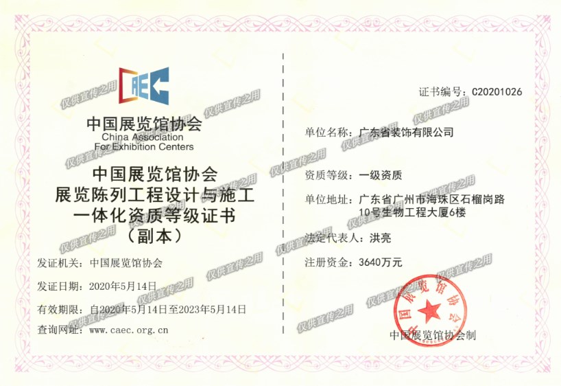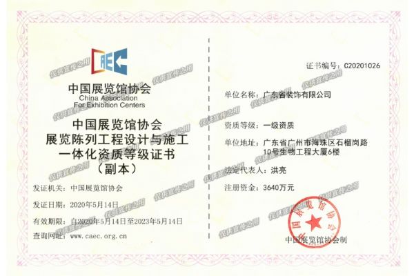 展览陈列工程设计与施工一体化资质