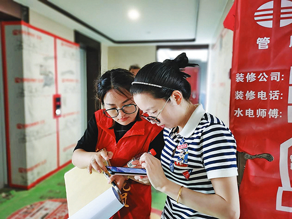 志愿者向居民介紹“信用+”居民分質(zhì)水水價(jià)優(yōu)惠應(yīng)用