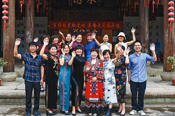 錢旭升(右一)與大元村文藝隊(duì)伍成員在一起。
