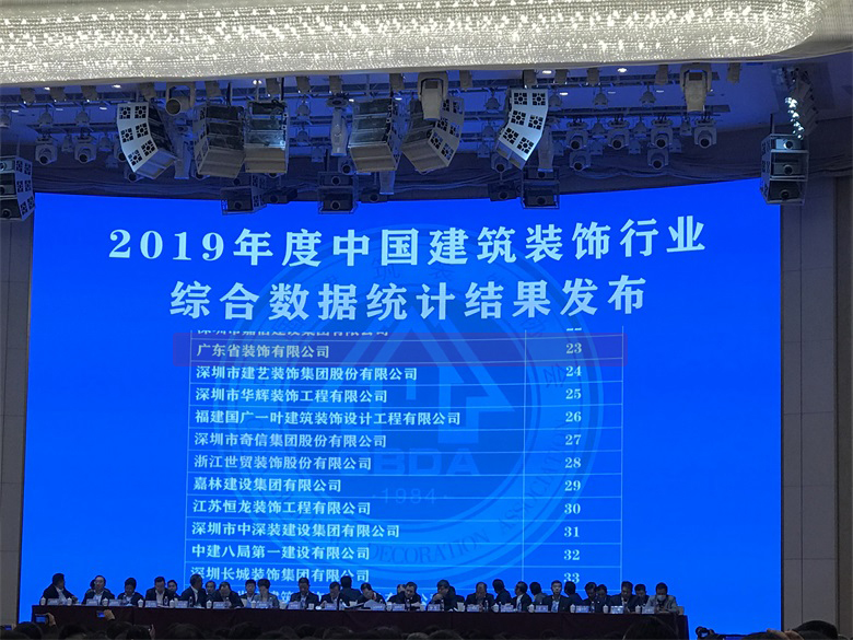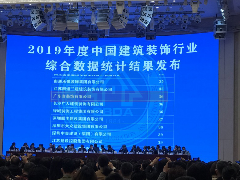 中国建筑装饰协会八届五次会议,颁布了中国建筑装饰行业综合数据统计结果,我司装饰类排行第36位,设计类排行第23位;会上同时颁发了2019至2020年度中国建筑工程装饰奖