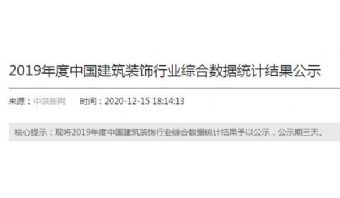 根据中装协《关于开展2019年度中国建筑装饰行业数据统计工作的通知》(中装协[2020]37号)及“2019年度中国建筑装饰类数据统计工作方案”,中国建筑装饰协会组织开展了2019年度中国建筑装饰行业综合数据统计。现将2019年度中国建筑装饰行业综合数据统计结果予以公示,公示期三天。
