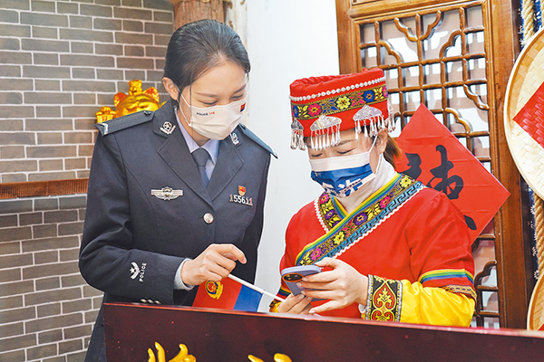 民警面對面開展美麗鄉(xiāng)村治安宣傳。 鄭圻冬 攝