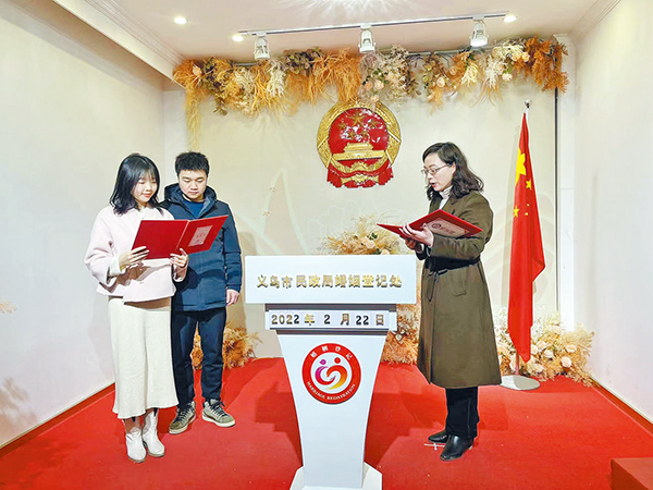 義烏165對(duì)新人甜蜜領(lǐng)證 特邀頒證嘉賓為新人頒證