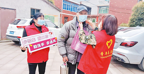 赤岸“志愿紅”勸導(dǎo)村民戴口罩