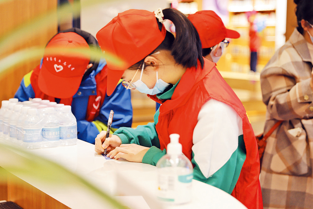 “超喜歡‘喝不完請把我?guī)ё摺@條標語,寓教于樂,時刻提醒喝水的人要節(jié)約用水?!睂τ谝恍┯袆?chuàng)意的設計,旁觀者給予充分肯定?;顒悠陂g,學生們還開展了圖書整理、衛(wèi)生清潔、設施維護等志愿服務。(林曉燕)