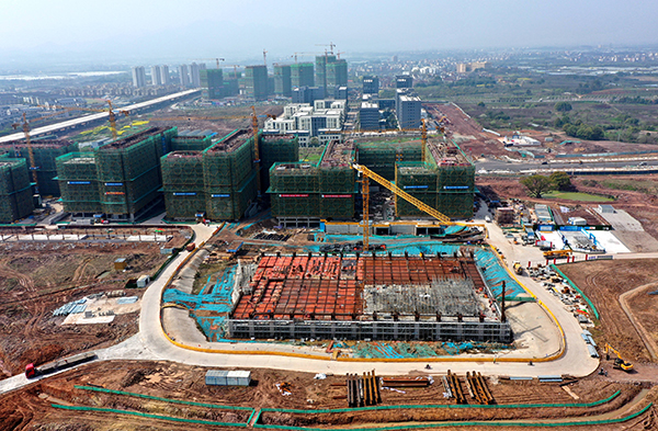 3月24日,佛堂鎮(zhèn)雙江湖科教園區(qū)。省重點工程浙江大學(xué)“一帶一路”國際醫(yī)學(xué)院及基礎(chǔ)配套服務(wù)設(shè)施工程(一期)一標段項目體育中心正式進入主體結(jié)構(gòu)全面建設(shè)階段,樓板施工、鋼柱安裝、支模架搭設(shè)等一派如火如荼施工場面。截至目前,該項目學(xué)生宿舍樓主體已結(jié)構(gòu)全部完成,完成體育中心整體建設(shè)工程量的30%。