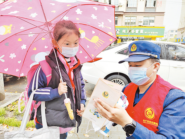 “小朋友,疫情要做好個人防護,提醒爸爸媽媽少外出、不聚集!”蘇溪鎮(zhèn)專職消防隊志愿者們在轄區(qū)持續(xù)開展“小口罩”傳遞“大溫暖”活動。消防“紅馬甲”向居民免費發(fā)放口罩,科普防疫防火知識,并利用無人機高空游弋靈活、移動速度快、覆蓋面廣的優(yōu)勢特點,在人員密集場所不間斷進行高空巡邏宣傳,使疫情防控和消防宣傳真正做到無死角、全方位、立體化。