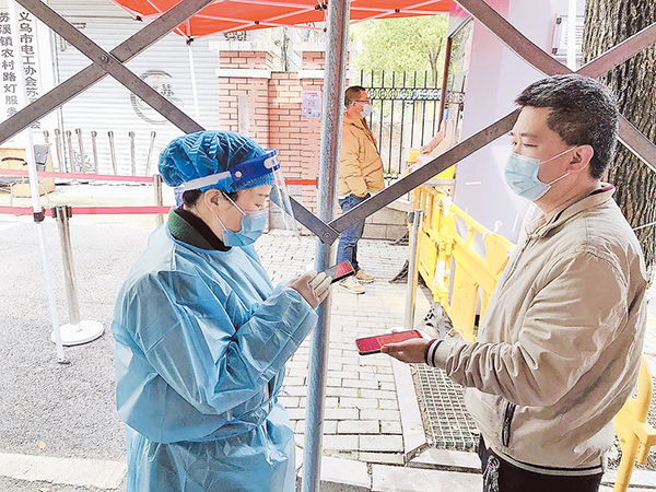 村社樓道里,他們編織出一張清村掃樓“安全網(wǎng)”;衛(wèi)生院核酸采樣點,他們用愛心服務(wù)暢通醫(yī)生與居民的距離;高速公路出入口,他們晝夜奮戰(zhàn)全力守護義烏“北大門”;手機客戶端,他們用愛心踐行“一個也不落下”的承諾……