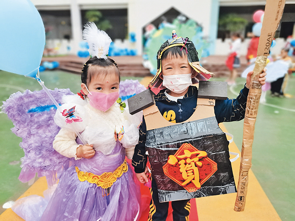 小班段以繪本表演《生病的地球》拉開生態(tài)閱讀節(jié)的序幕,大班經典誦讀《詩韻四季》、中班經典童話《小蝌蚪找媽媽》、教師朗誦《書的旋律》陸續(xù)登場?;顒又?,一場變廢為寶的“書香”環(huán)保時裝秀驚艷全場。時裝件件構思巧妙,創(chuàng)意獨特,是小朋友們和爸爸媽媽一起用快遞箱、泡沫紙、環(huán)保袋等材料精心制作的。(龔盈盈 方笑娟)