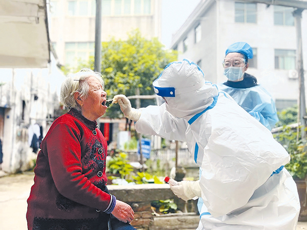不一會(huì),60多歲的村民陳菊芳抱著3歲的孫子,來到核酸采樣區(qū)。一旁的“云溪嫂”見到,趕緊上前帶他倆進(jìn)入“愛心通道”進(jìn)行檢測(cè)。村民宋法英老人已85歲高齡,因?yàn)橐粭l腿行動(dòng)不便,她進(jìn)出都需要拄拐杖,上溪鎮(zhèn)中心衛(wèi)生院的醫(yī)生便上門為她進(jìn)行核酸檢測(cè)。