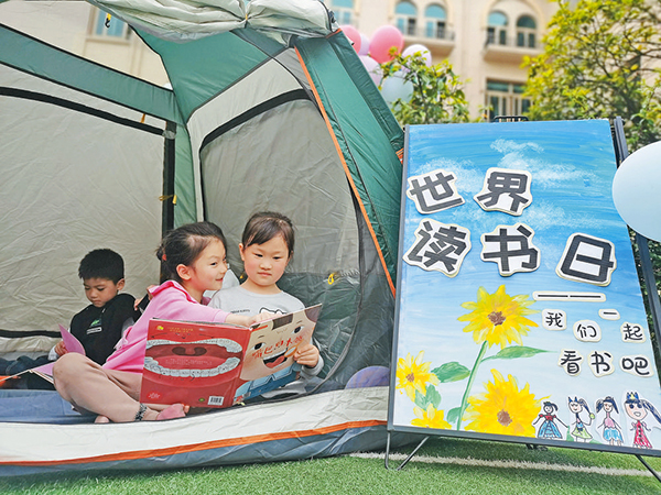4月22日上午,萬廈御園幼兒園開展了一次帳篷里的讀書會,迎接世界讀書日。 全媒體記者 張?jiān)骑w 通訊員 葉蘭英 攝