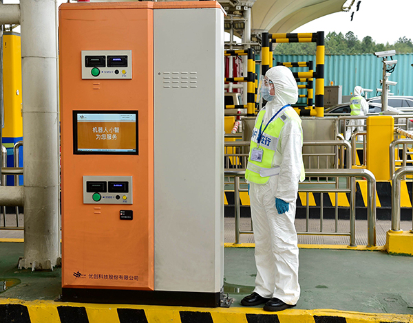 甬金高速義烏東出口,為提高查驗效率、保障暢通,特別推出機器人小智服務。