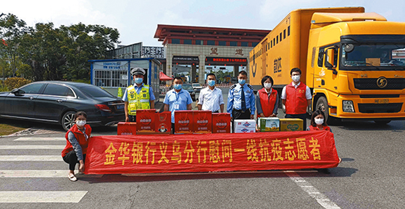 5月25日下午,金華銀行義烏分行星輝金融志愿服務(wù)隊(duì)一行七人,在負(fù)責(zé)人丁勁松的帶領(lǐng)下,前往G60滬昆高速望道收費(fèi)站,慰問堅(jiān)守在防疫一線的工作人員,為他們送去礦泉水、紙巾、火腿腸、方便面、水果等物資,表達(dá)了分行全體員工對(duì)防疫一線人員的敬意。(王棟)