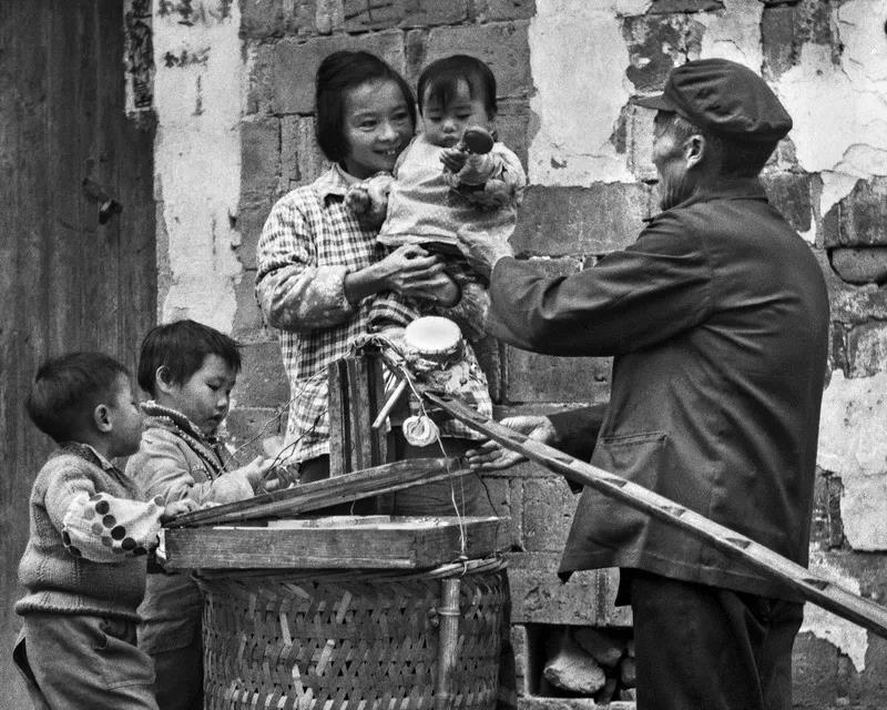 征集的部分照片?!肚锰菗Q雞毛》,1978年于義烏江灣崇山村,金福根攝。