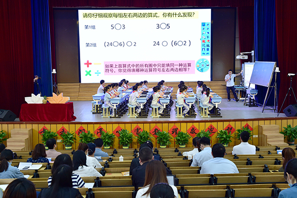 活動現(xiàn)場,課題組骨干老師做課堂展示,讓線上線下的國內(nèi)教育界專家及一線的老師們,進(jìn)一步了解雙變式支架教學(xué)的結(jié)構(gòu)在數(shù)學(xué)學(xué)科中的運用,為成果的推廣做了一個很好的示范與引領(lǐng)。