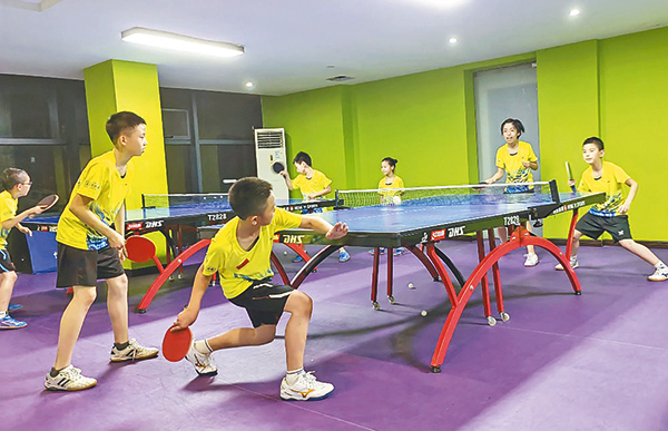 6月21日晚,在義烏市威瑤少兒乒乓球訓(xùn)練基地,一群小將正在不停地?fù)]動球拍,揮灑汗水。球館內(nèi),勝球時的吶喊聲,教練員的指導(dǎo)聲,此起彼伏。