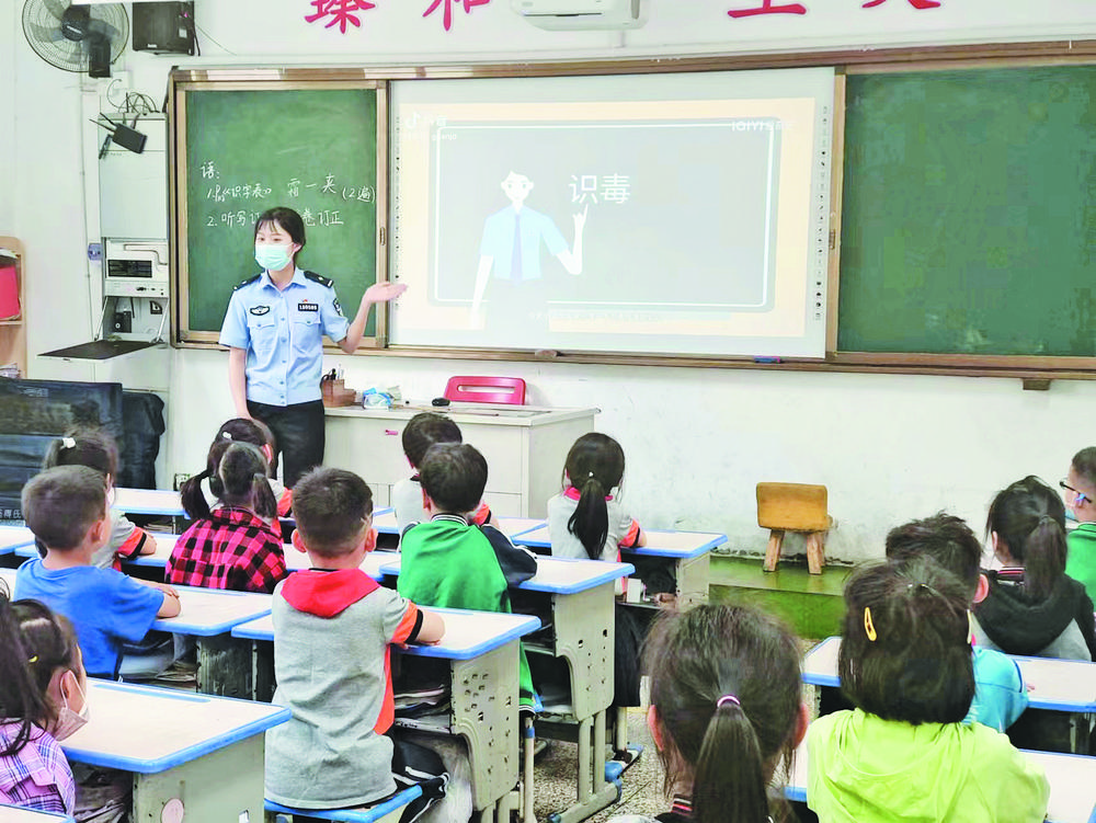 民警在禁毒知識(shí)宣講中,為小學(xué)生們普及了毒品的危害性和吸毒的違法性,結(jié)合青少年實(shí)際,特別講解了如何識(shí)別各類新型毒品,并分發(fā)了相關(guān)宣傳資料,提高學(xué)生們識(shí)毒防毒拒毒的能力。(陳洋波)