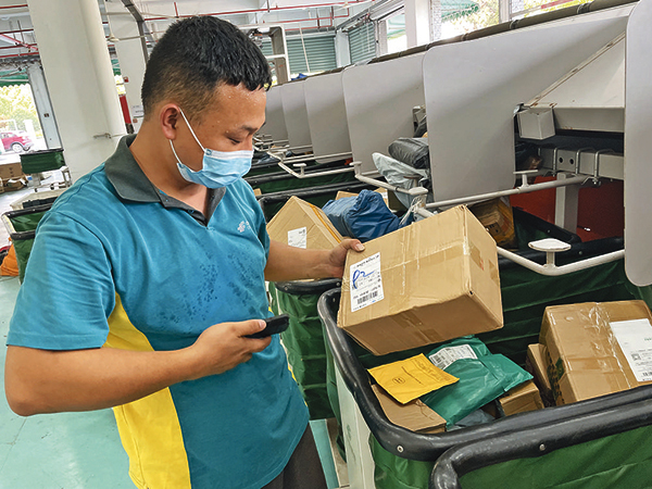 連日來氣溫急劇攀升,位于赤岸農(nóng)村電商快遞物流服務(wù)中心更是一派火熱。昨日下午2點(diǎn),郵政投遞員剛從外面送完件回來,又快速走到分揀區(qū)找出屬于自己片區(qū)的快遞,隨后搬上各自的快遞車準(zhǔn)備派送。他們無畏高溫,在烈日下奔走,將一件件包裹及時送到市民手中,暢通著網(wǎng)購商品派送的“最后一公里”。