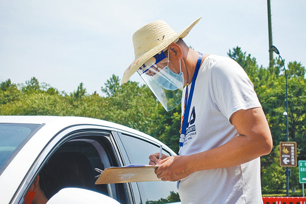 記者看了一下表,核查一輛車(chē)平均要站立20分鐘,站在發(fā)燙的車(chē)輛邊上,熱得讓人難熬,但工作效率和標(biāo)準(zhǔn)沒(méi)有降低?!斑@里是義烏的‘大門(mén)’,我們作為‘守門(mén)員’,一定要仔細(xì),做好常態(tài)化疫情防控,守牢這扇門(mén)?!眲⒄袢A說(shuō),“防疫責(zé)任重大,我們不敢有半點(diǎn)馬虎,每人要守8個(gè)小時(shí),一班下來(lái),一個(gè)人要喝10多瓶水才能撐住?!?/div>