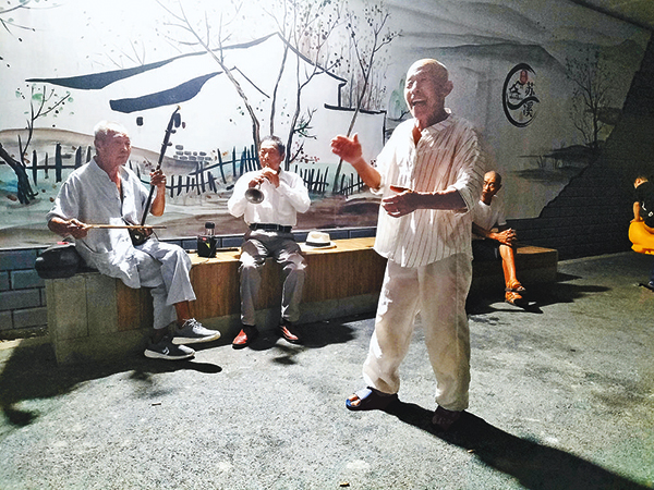 據(jù)了解,在橋下空間自娛自樂的3位老大爺,分別是62歲的劉培愛、72歲的張殿友和65歲的鄒廣亮,他們都來自安徽省靈璧縣。劉大爺擅長(zhǎng)吹嗩吶,如今在殿下村當(dāng)保潔員;張大爺暫住在后店村大水地自然村,他9歲就開始學(xué)拉二胡,演奏水平深得演藝界贊賞;鄒大爺據(jù)說之前是老家某劇團(tuán)的演員,擅長(zhǎng)唱當(dāng)?shù)氐摹袄昵弧?,他在演唱時(shí)喜歡用雙掌擊打。張大爺和鄒大爺目前均在蘇溪從事廢品收集工作。3位老大爺因?yàn)闊釔圩叩揭黄?,去年橋下空間建成開放后,他們偶然發(fā)現(xiàn)了這個(gè)“風(fēng)水寶地”,于是利用晚上休息時(shí)間“搭班子”在此演出。