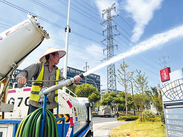 市陸港投資開發(fā)有限公司工程建設(shè)部相關(guān)負(fù)責(zé)人告訴記者,連續(xù)的高溫天氣給公共綠地養(yǎng)護(hù)帶來了嚴(yán)峻考驗(yàn)。公司避開高溫時(shí)段,安排綠化養(yǎng)護(hù)工人利用早晚時(shí)間灌溉澆水,在降低澆灌水蒸發(fā)量的同時(shí),也能讓植物“喝飽水”?!皾菜畷r(shí)間安排在每天早上5點(diǎn)到10點(diǎn)、晚上7點(diǎn)到12點(diǎn)。一天兩次,做到澆足澆透,不留死角,確保綠化苗木安全度夏?!边@位負(fù)責(zé)人說。