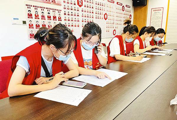教師志愿者在防疫一線開(kāi)展流調(diào)。