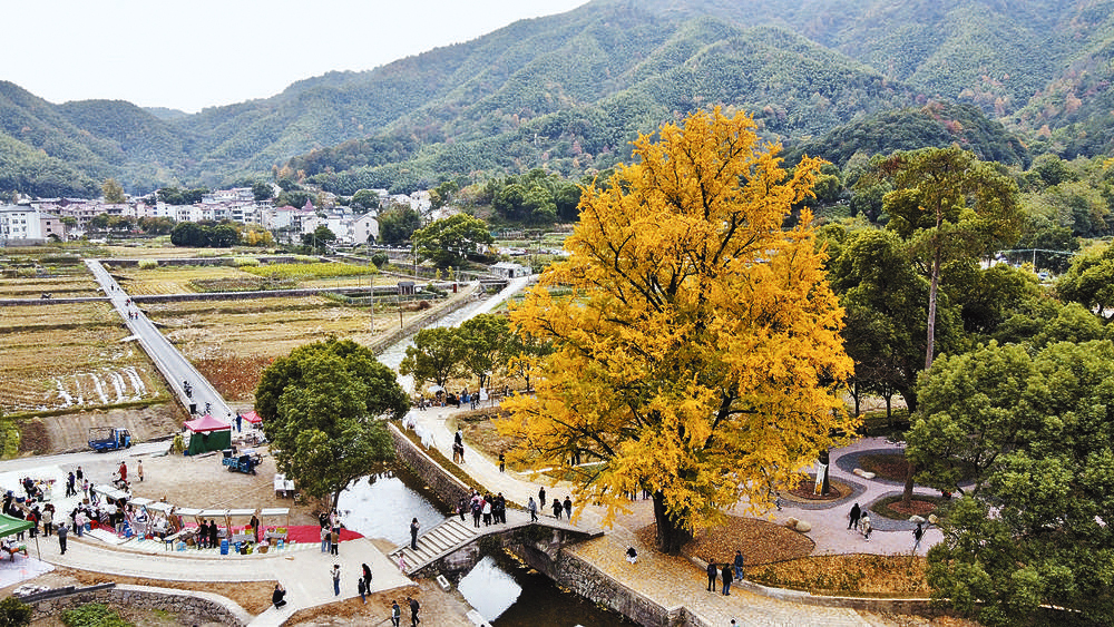 連日來,遠(yuǎn)在義北的大陳鎮(zhèn)紅峰村好不熱鬧,游客紛至沓來,只為一睹千年古銀杏樹換上一身金黃色的“新裝”。