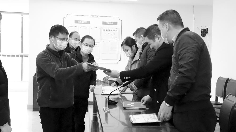 社區(qū)工作人員為“小巷管家”發(fā)放聘任書。