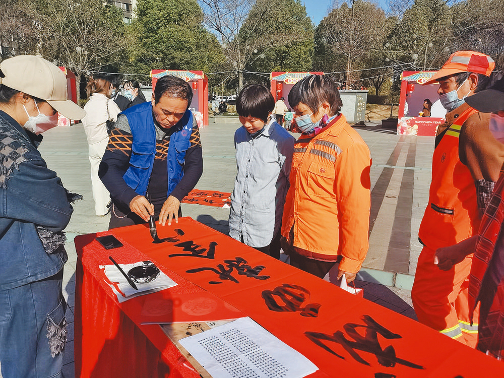 書法家協(xié)會成員現(xiàn)場寫春聯(lián)