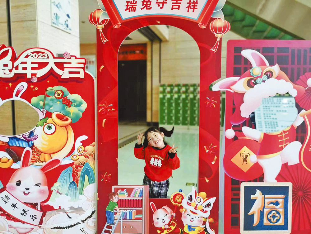 一旁的“福兔臨門”相框成了來(lái)圖書館合影留念打卡的上佳之選?!拔乙惨透M门R門拍個(gè)照,分享到朋友圈”,在主題相框前,市民們紛紛將美好瞬間定格在照片里。