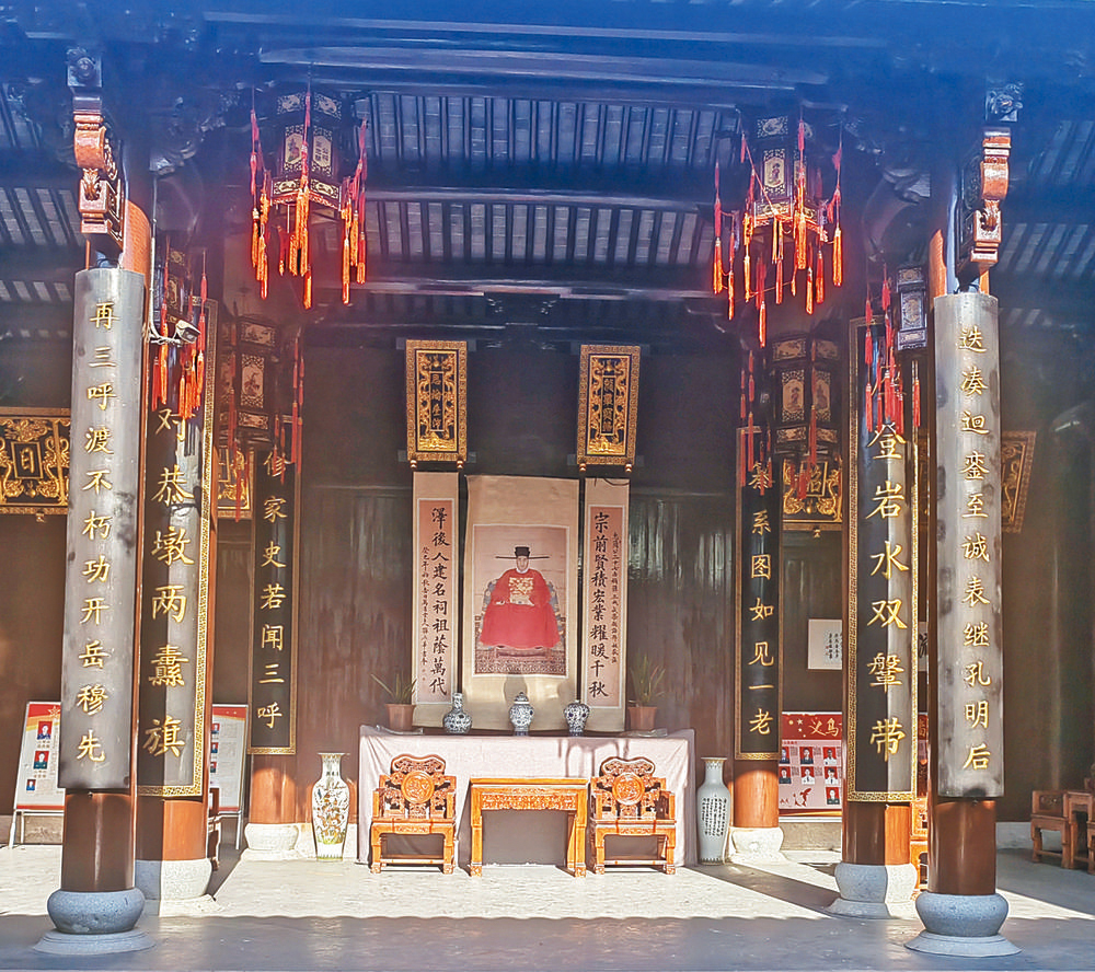 1月31日,冬日的朝陽和煦而溫暖。沿著嘩嘩流淌的盤溪,穿過亭臺水榭的長廊,宗忠簡公祠潛藏于宗塘村文化禮堂的深處,它古樸而莊嚴(yán)、醇厚而典雅,彌漫著悠遠(yuǎn)的歷史文化氣息。