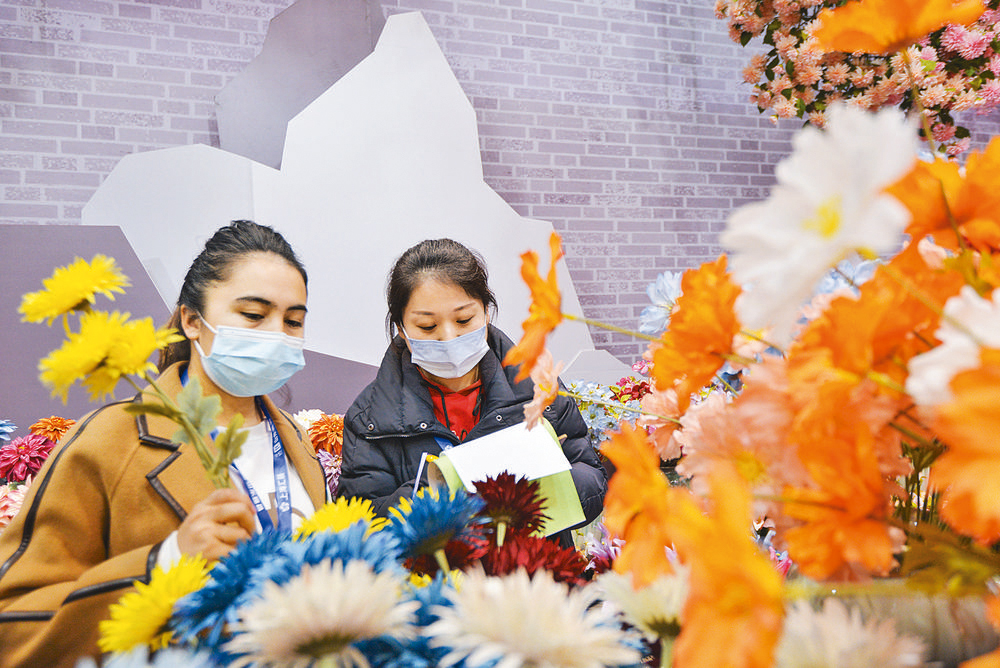 仿真花卉由于具有裝飾效果好、方便打理等優(yōu)點,頗受消費者喜愛?!拔医裉鞄О屠账固沟呐笥褋恚饕遣少彿抡婊?、婚慶用品?!痹谥袊?5年的約旦客商穆西穆告訴記者,展會能直觀看到產(chǎn)品,有很好的體驗感,還能跟老板直接溝通,下單就會很爽快。這次,他們三人團一上午已采購了5萬元的各類仿真花及婚慶用品。