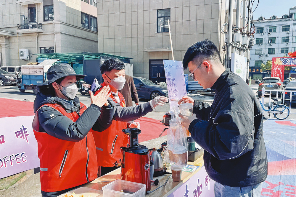 “他白天幫助妻子直播賣飾品,晚上去咖啡店兼職做咖啡,真的太能干了?!睈坌臍埣踩酥邑撠?zé)人龔愛珍夸贊道。