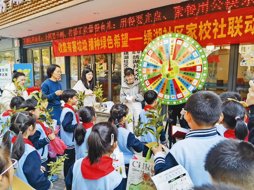 近日,繡湖社區(qū)攜手繡湖小學,舉行“收集有害垃圾,播種綠色希望”家校社聯(lián)動活動。活動現(xiàn)場,社區(qū)工作人員詳細講解垃圾分類知識,并寓教于樂,通過“垃圾分類大轉(zhuǎn)盤”游戲,檢驗小學生對垃圾分類了解程度。此外,孩子們還拿出過期藥品、廢電池、廢燈管等有害垃圾,進行垃圾分類投放,正確完成后,從工作人員處換取一株綠油油的柑橘苗。(林曉燕 龔雙妍)