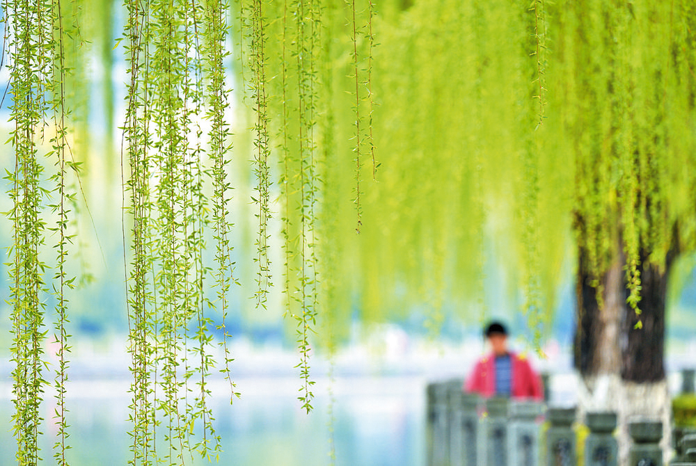 江邊吐芽的垂柳,猶如春天里飄逸的輕紗。
