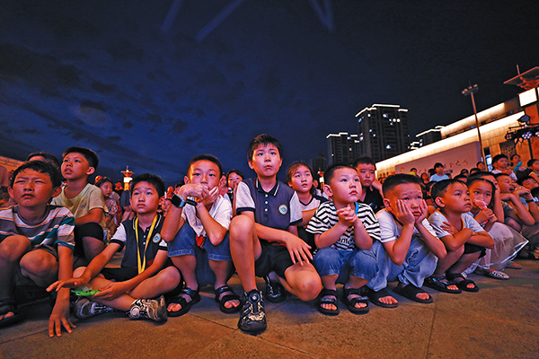 聚精會(huì)神地觀看文明實(shí)踐所舉辦的防溺水、反詐騙主題節(jié)目。