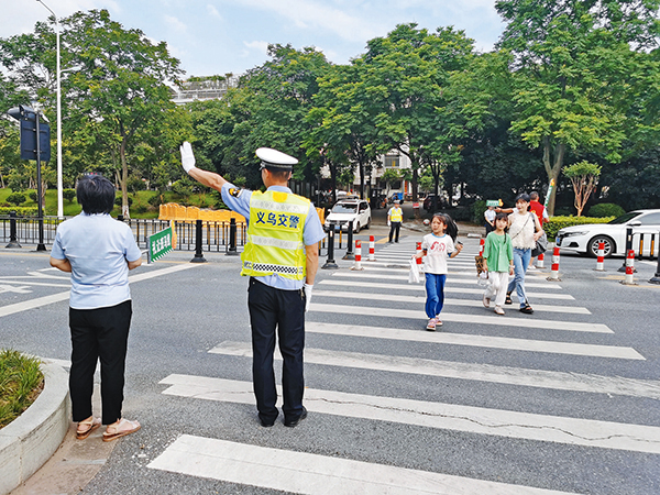在一個個斑馬線前,交警與文明交通志愿者一道,對過往車輛開展禮讓斑馬線、文明過馬路宣傳、勸導(dǎo)活動,共同營造文明出行的濃厚氛圍。(樓玲)