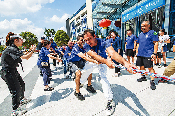 杭州亞運(yùn)會(huì)的腳步越來(lái)越近了。8月26日,在義烏國(guó)際商貿(mào)城二區(qū)新能源產(chǎn)品市場(chǎng),來(lái)自瑞典、印度、也門(mén)、巴基斯坦、塞內(nèi)加爾等多個(gè)國(guó)家的30余名外商熱情滿滿,與義烏市場(chǎng)經(jīng)營(yíng)戶攜手迎亞運(yùn)。當(dāng)天,他們共同參與了拔河比賽、FIFA足球、趣味游戲等多個(gè)競(jìng)技項(xiàng)目。(吳峰宇)