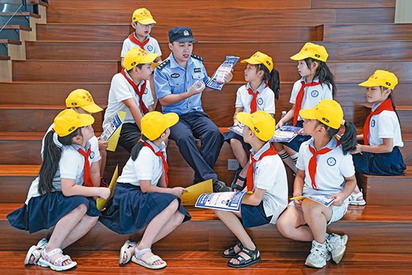 活動中,警員通過反詐、反欺凌、防交通傷害、防溺水、禁毒等法治安全宣傳教育,為孩子們送上一個別樣的“開學大禮包”,體驗式學習安全知識的同時,播下安全“種子”。(陳洋波)