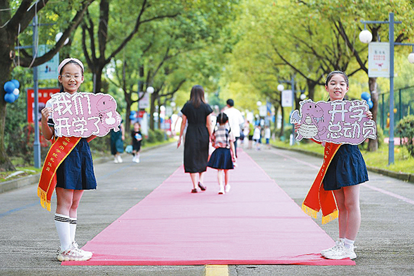 昨日,廿三里第二小學(xué)的一年級新生和家長們開心地走進(jìn)校園,走過紅毯,拍照打卡。小志愿者們擊掌迎接,開啟多彩新學(xué)期。(張?jiān)骑w 李 森 圖)