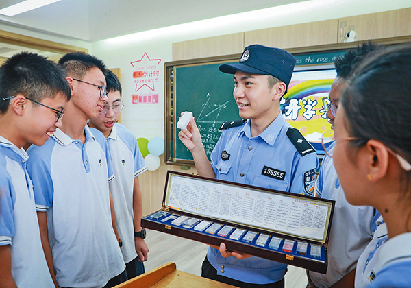 近日,市公安局后宅派出所民警到轄區(qū)學(xué)校開(kāi)展禁毒安全知識(shí)宣講。民警結(jié)合“夏季行動(dòng)”宣防工作,向?qū)W生展示仿真毒品模型,并宣講禁毒知識(shí),為他們送上一場(chǎng)別開(kāi)生面的“禁毒課”。(陳洋波)