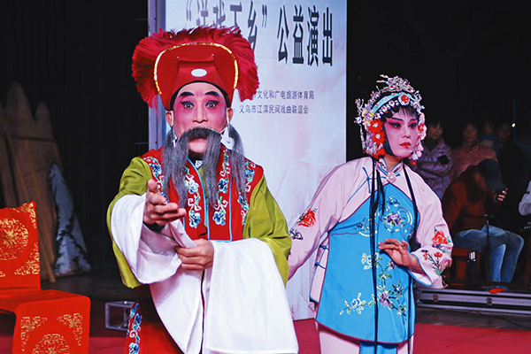 11月21日晚,義烏市江濱戲曲聯(lián)誼會走進江東街道東洲社區(qū),為居民帶來了婺劇《姐妹易嫁》。演出現(xiàn)場,唱腔、喝彩、掌聲交織在一起,熱鬧非凡。