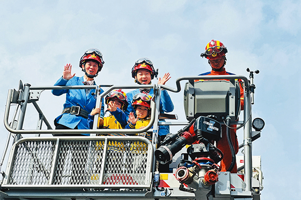 截至目前,全市累計(jì)開(kāi)設(shè)“大手拉小手”消防實(shí)踐課堂112場(chǎng),惠及少年兒童5萬(wàn)余人。圖為學(xué)生在體驗(yàn)登高消防車(chē)。(宗琳玲 駱紅婷)