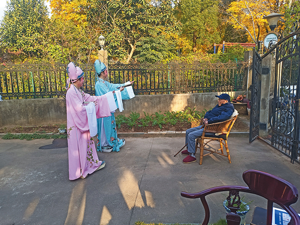 日前,市文聯(lián)越劇聯(lián)誼會(huì)“越韻芬芳暖夕陽”公益項(xiàng)目“一個(gè)人的劇場”走進(jìn)離休老黨員、老干部、百歲老人王明才家中,樂得王老瞇了眼。