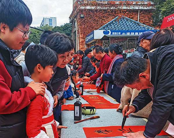 春節(jié)未至,氛圍漸濃。12月10日上午,縣前街65號繡湖小學大門前人流熙攘,由金華和義烏兩地科普作家協(xié)會、浙中書法院和繡湖小學共同主辦的“迎新年、送春聯(lián)”活動吸引眾多市民前來。兩個小時內(nèi),楊守春、王立群、貝立新等數(shù)位書法名家現(xiàn)場揮毫,為廣大市民義務書寫春聯(lián)2000余副。