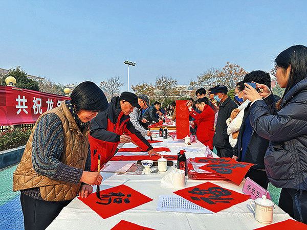 活動(dòng)現(xiàn)場(chǎng),書(shū)法家老師、部隊(duì)官兵書(shū)法愛(ài)好者揮毫潑墨,為居民熱情書(shū)寫(xiě)春聯(lián),各種書(shū)體盡顯神韻,對(duì)新年的美好祝福躍然紙上。經(jīng)過(guò)兩個(gè)多小時(shí)的創(chuàng)作,20多位書(shū)法志愿者共寫(xiě)下2000余件書(shū)法作品。(傅柏琳)