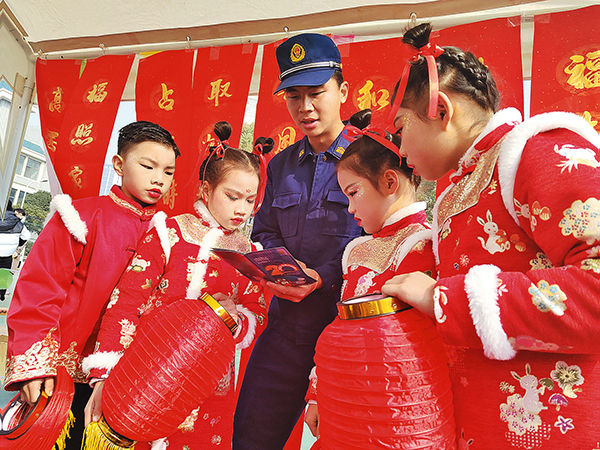 上月29日,蘇溪鎮(zhèn)龍祈社區(qū)舉辦傳統(tǒng)文化進(jìn)校園活動(dòng)暨蘇溪鎮(zhèn)第四小學(xué)首屆民俗文化節(jié)。市消防救援支隊(duì)以此為契機(jī),組織開展消防安全知識(shí)宣傳進(jìn)校園活動(dòng),提醒廣大師生在體驗(yàn)民俗文化的同時(shí)不忘消防安全,為他們送上元旦“平安禮”。(宗琳玲 段靜飛 駱紅婷)