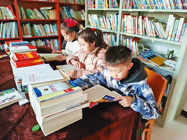 孩子們?cè)谵r(nóng)家書屋內(nèi)閱讀