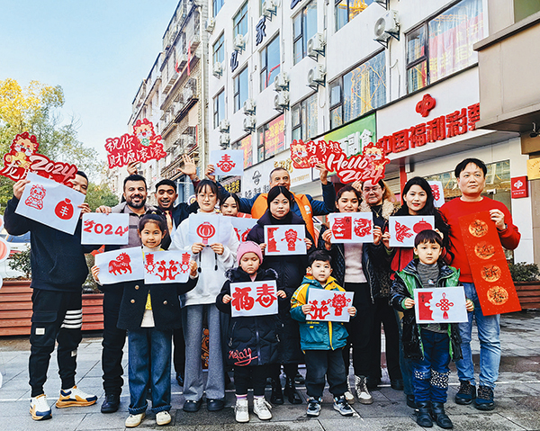 活動(dòng)期間,在剪紙愛好者的悉心指導(dǎo)下,外國友人也剪出了自己的新年剪紙作品,有的還在微信朋友圈展示自己的杰作;受邀前來的書法愛好者們忙著寫春聯(lián)、書“福”字,興趣濃厚的外國友人和少數(shù)民族同胞在他們的指導(dǎo)下學(xué)寫春聯(lián)和“?!弊?。(林曉燕)