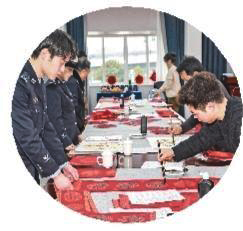 書法愛好者在市公安局揮毫潑墨寫春聯(lián)。